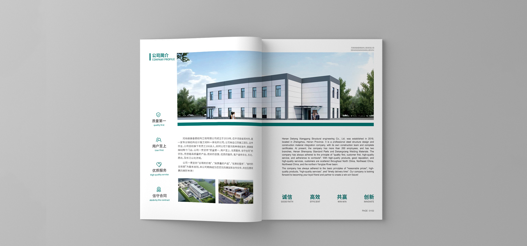 河南德康香鋼結構工程有限公司成立于2019年,位于河南省鄭州市。是一家專業鋼結構設計施工材料一體化的公司,公司有自己的施工團隊,證件齊全。公司目前旗下有員工200余人,同時公司下屬河南神噴標準件、德康香焊材兩個門店,公司一貫堅持“質量第一、用戶至上、優質服務、信守合同”的宗旨,憑借著高質量的產品,良好的信譽,優質的服務,客戶遍布華北、東北、西北、及長江以北流域。